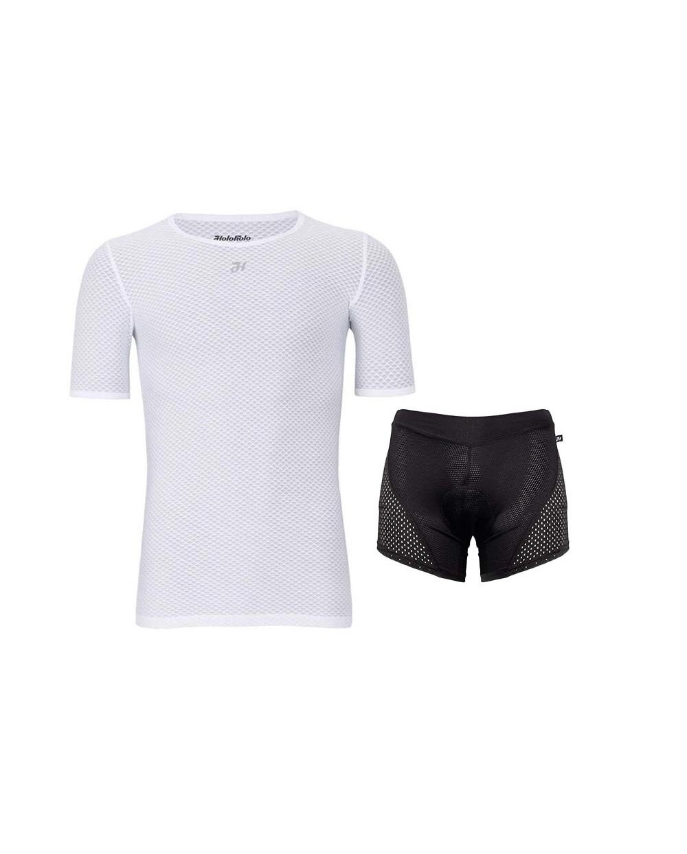 Świetny, funkcjonalny zestaw dla każdego kolarza! Lekki i oddychający top z siateczki odprowadza pot, reguluje temperaturę i zapewnia suchość nawet w upalne dni. Bokserki z wkładką rowerową zapewniają maksymalny komfort, ochronę i swobodę ruchów – zarówno na długich trasach, jak i na wymagających zjazdach. Ten wszechstronny zestaw to niezawodna warstwa bazowa podczas jazdy na rowerze.