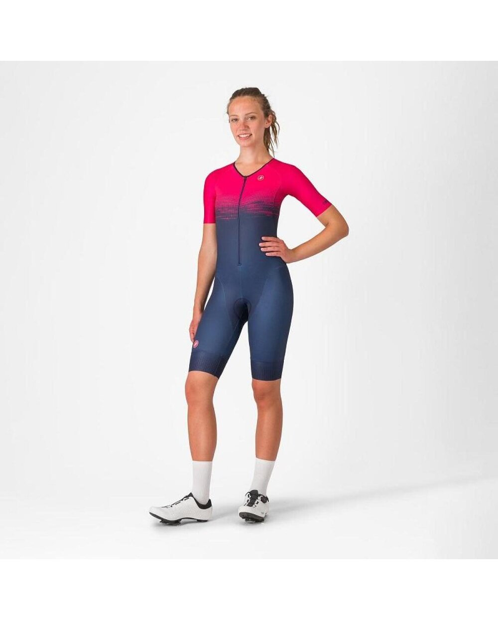 CO TO JEST / CECHY PRODUKTU Najwyższej klasy kombinezon z krótkim rękawem dla triathlonistów początkujących lub z ograniczonym budżetem Top z krótkim rękawem dla początkujących triathlonistów lub z ograniczonym budżetem Rękawy do łokci z bezszwowym wykończeniem zapewniającym maksymalny komfort i aerodynamikę Zamek błyskawiczny YKK z przodu można rozpiąć do ¾ kieszeni z tyłu, kopiują tył, ale jest w nich wystarczająco dużo miejsca na odżywki sportowe. Kolory: 010 czarny, 424 błękit belgijski/jasnoróżowy.Rozmiary: XS-XL.Waga: 228 g. Podobnie jak w przypadku naszych topowych modeli, tutaj również używamy wersji z krótkim rękawem, ponieważ nawet początkujący lub triatloniści dysponujący ograniczonym budżetem nie chcą stracić przewagi aerodynamicznej i profesjonalnego wyglądu. Z droższych topowych modeli przenieśliśmy design tylnych kieszeni i wstawkę KISS Tri. Dzięki doskonałej elastyczności materiału i obszernemu krojowi kombinezon Core jest idealnym wyborem na treningi i wyścigi na dowolnym dystansie.
