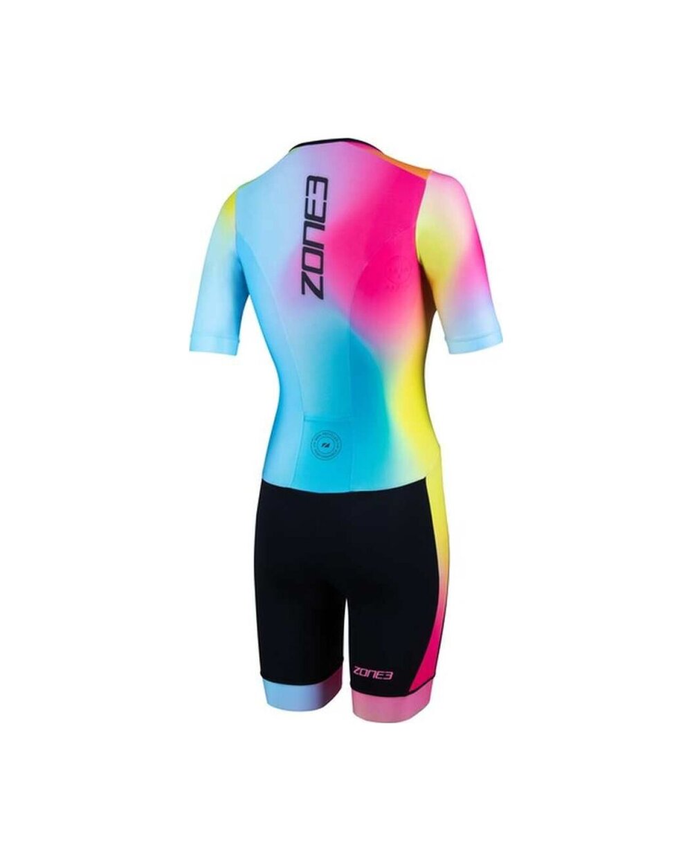 Kombinezon Tri-suit wyposażony jest w przemyślanie umieszczoną wkładkę Tri-Lite, która zapewnia komfort podczas części rowerowej bez ograniczeń podczas biegania i pływania, a także silikonowe uchwyty na nogawkach, które utrzymują spodnie stabilnie na miejscu bez niepożądanych ruchów. Elastyczny zamek błyskawiczny z przodu pozwala na łatwe ubieranie i dodatkową wentylację w razie potrzeby, natomiast elastyczna kieszeń z tyłu zapewnia praktyczne miejsce do przechowywania żeli energetycznych lub drobnych przedmiotów.