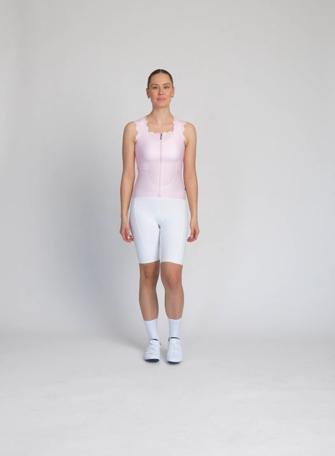 Koszulka rowerowa bez rękawów z idealnie zaokrąglonym dołem, która dodaje blasku także strojom rowerowym. Grubsze faliste ramiączka i kwadratowy dekolt spłaszczają proporcje ramion i każdy rodzaj dekoltu. Nie brakuje w niej funkcji, których można oczekiwać od wysokiej jakości koszulki. Zamek błyskawiczny na całej długości z ochraniaczem szyi. Potrójna kieszeń z zapinaną na zamek kieszenią zabezpieczającą. Bezszwowy dół z antypoślizgowym nadrukiem z tyłu koszulki.
