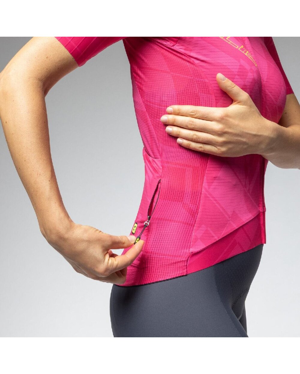 Każda część koszulki PR-E Schema została zaprojektowana tak, aby maksymalnie wykorzystać każdy zastosowany materiał. Wykonany jest z tkaniny Rap Dry Carbon z przeplatanymi włóknami węglowymi, ultralekkiej tkaniny Micro Aero zapewniającej cyrkulację powietrza i siateczki Piuma pod pachami zapewniającej oddychalność, co zapewnia najwyższy komfort i waży zaledwie 100 gramów. System S-Stability w dolnej przedniej części koszulki gwarantuje optymalne dopasowanie. Wszyte rękawy o kroju bez podszewki.