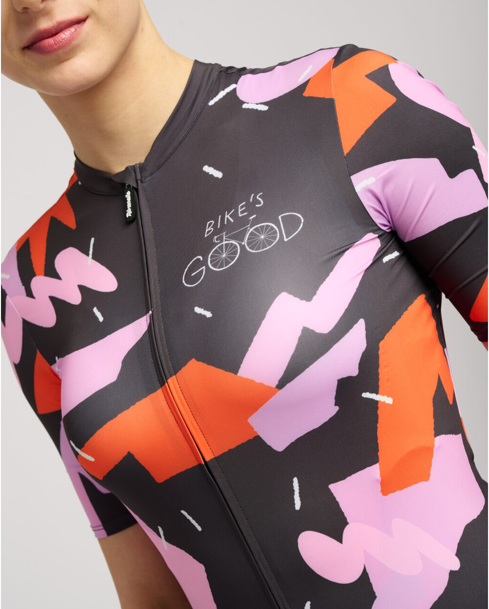 Lekki, wysokiej jakości materiał jest bardzo przyjemny dla ciała, a jednocześnie niezwykle przewiewny. Dzięki swojej dobrej elastyczności dopasowuje się do każdej sylwetki, jednocześnie wygładzając jej kontury czy defekty. Koszulka jest wyposażona w praktyczne funkcje, a każdy szczegół został zaprojektowany z myślą o Twojej wygodzie. Zamek błyskawiczny na całej długości z ochraniaczem szyi. Potrójna kieszeń z zapinaną na zamek kieszenią zabezpieczającą. Bezszwowy dół z antypoślizgowym nadrukiem z tyłu koszulki.