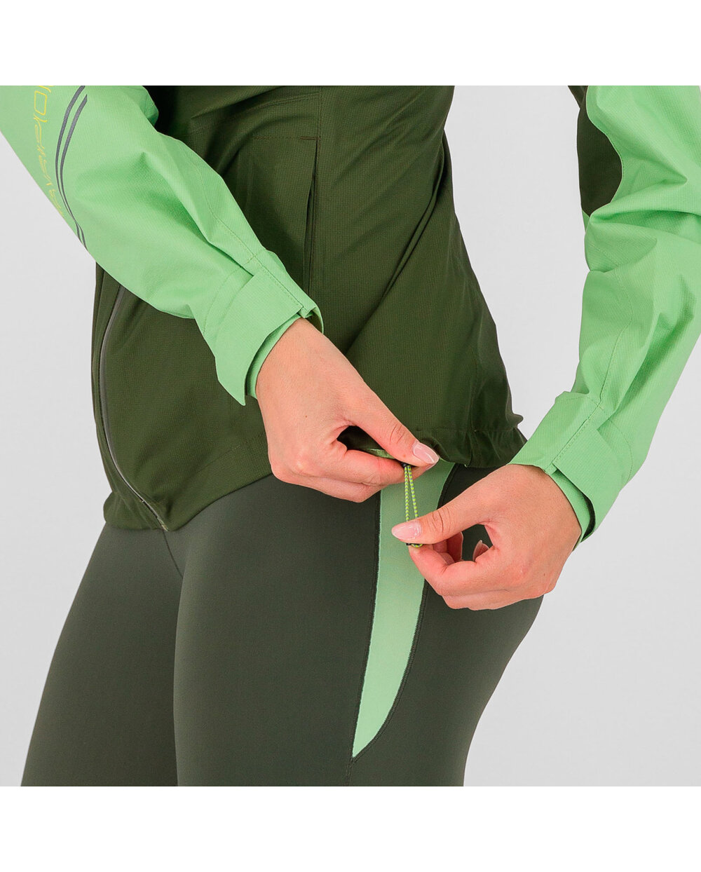 • Sznurek w pasie pozwala na indywidualne dopasowanie kurtki i zapobiega przedostawaniu się wiatru do wnętrza.