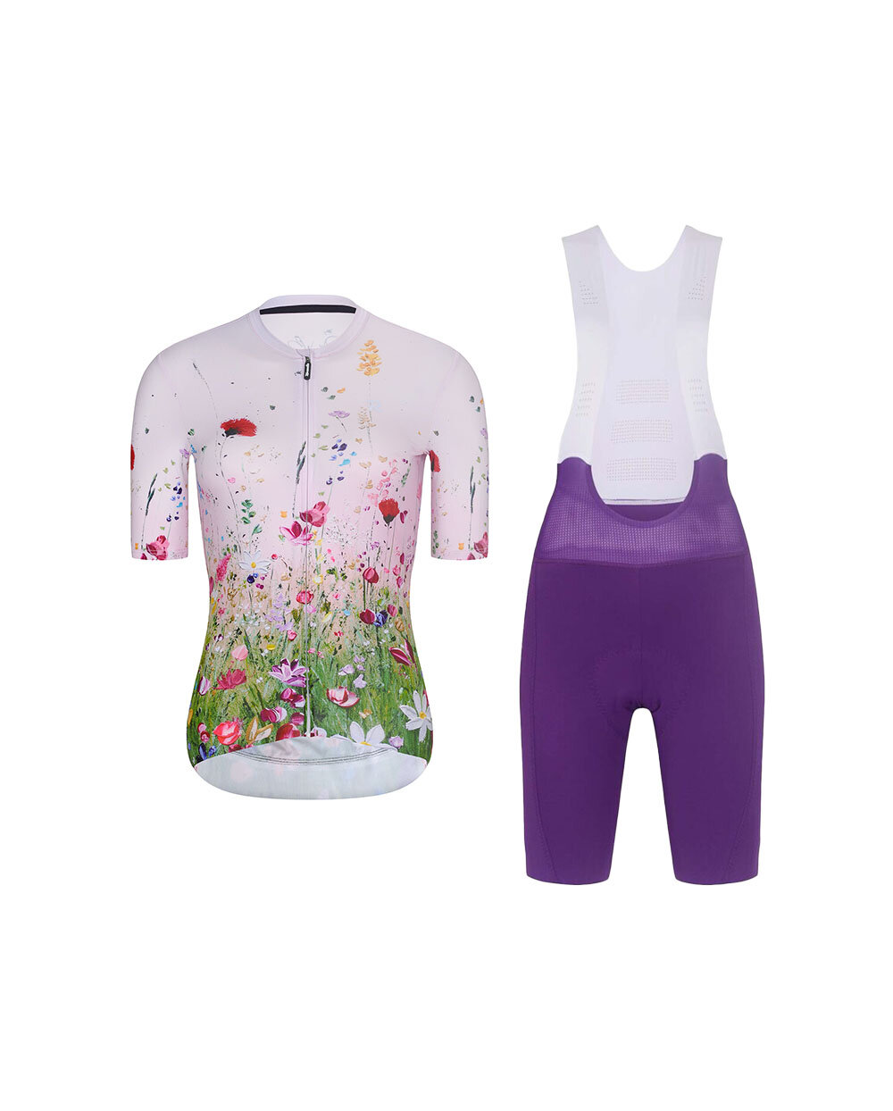 Damska stylizacja rowerowa Rivanelle IN BLOOM / NOVEL PRO łączy w sobie artystyczny design, wysoki komfort i funkcjonalne wykonanie dla każdej rowerzystki, która chce wyglądać stylowo na rowerze, a jednocześnie czuć się maksymalnie komfortowo. Połączenie koszulki IN BLOOM w różowym kolorze z wielobarwnym nadrukiem oraz krótkich spodenek z szelkami NOVEL PRO w kolorze fioletowym tworzy harmonijny, kobiecy i nastawiony na wydajność strój zarówno na treningi, jak i długie wycieczki.