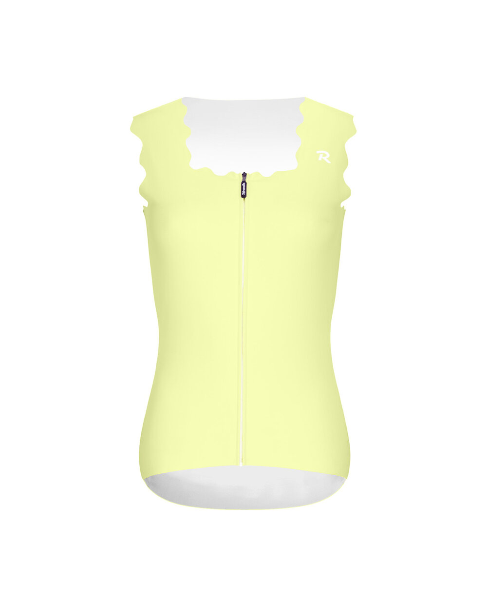 Koszulka bez rękawów przyciąga uwagę oryginalnym falistym wykończeniem, które nadaje strojowi rowerowemu elegancki i nowoczesny wygląd. Grubsze faliste ramiączka i kwadratowy dekolt podkreślają sylwetkę, a zamek błyskawiczny na całej długości z przodu z osłoną szyi, potrójna kieszeń z tyłu oraz kieszeń bezpieczeństwa na zamek zapewniają praktyczność na każdej trasie. Bezszwowy dół z antypoślizgowym nadrukiem z tyłu pomaga utrzymać koszulkę na miejscu.
