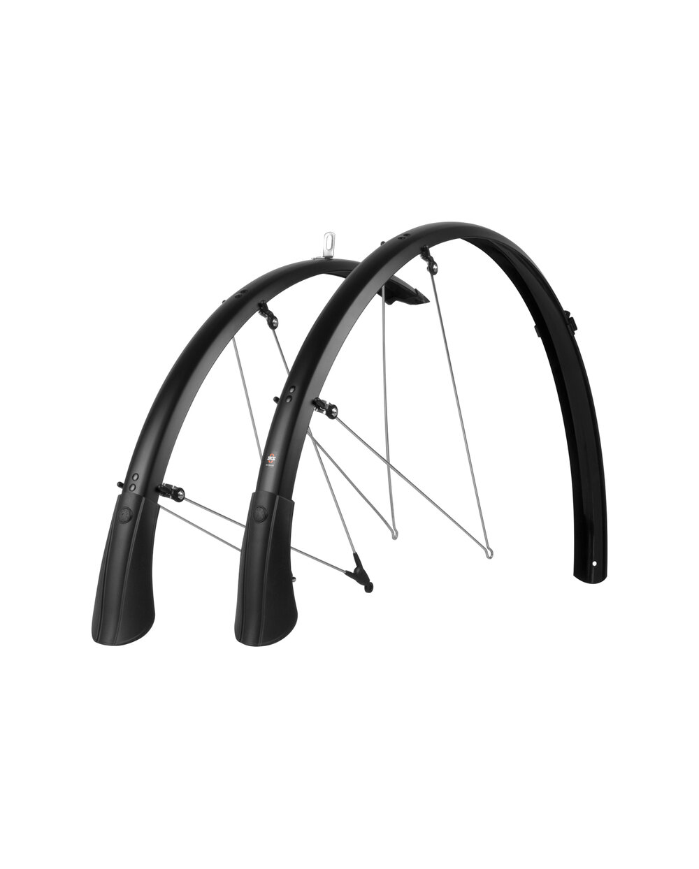 Zestaw błotników do 28-calowych rowerów crossowych i trekkingowych, w tym wysokiej jakości rozpórki ze stali nierdzewnej. Szerokość: 35/45/53 mm Kolor: czarny matowy Długość przedniego błotnika: 780 mm Długość tylnego błotnika: 1285 mm Mocowanie: klips ASR
