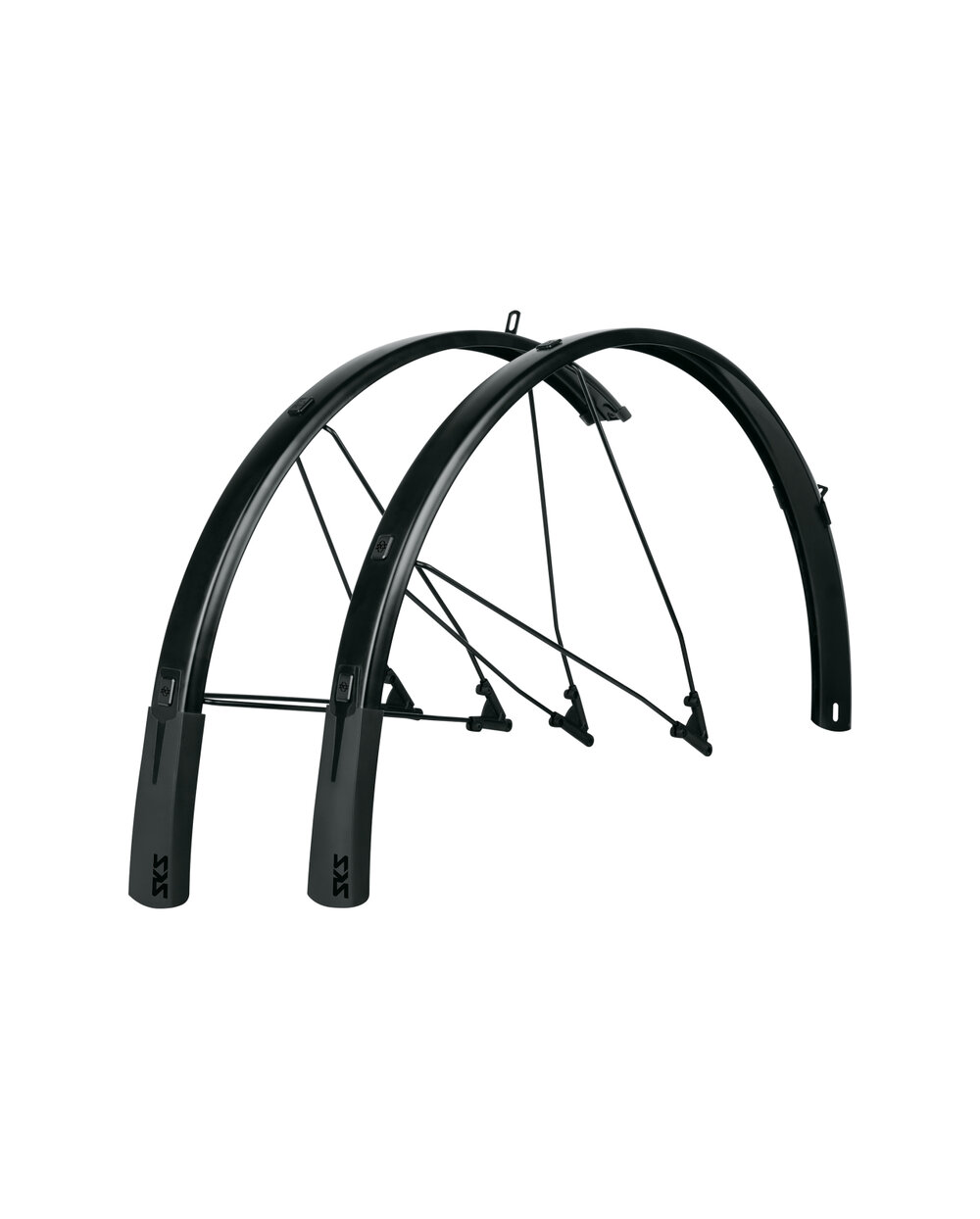 SKS Bluemels Style to zestaw błotników z elastycznym spojlerem, który zapewnia doskonałą wszechstronną ochronę przed zachlapaniem. Dzięki elastycznej konstrukcji typu sandwicz, w której ultracienkie paski aluminium są osadzone w powłoce z tworzywa sztucznego, błotnik jest wyjątkowo wytrzymały, sztywny i odporny na korozję. Model posiada nowy adapter V z systemem bezpieczeństwa ESC, który odłącza podwójne rozpórki w kształcie litery U, jeśli gałęzie utkną między końcami. Powinno to zapobiec utknięciu koła. Dzięki matowemu czarnemu wykończeniu i czarnym elementom mocującym błotniki mają jednolity wygląd i wyróżniają się również pod względem wyglądu.W tym akcesoria i wsporniki. • Konstrukcja wielowarstwowa z aluminium i tworzywa sztucznego • Z elastycznym spojlerem • Adapter V z systemem bezpieczeństwa ESC • Solidne podwójne rozpórki w kształcie litery U • Wyprodukowano w NiemczechKolor: matowy czarny rozmiar kół: 27,5" - 29" szerokość opony w mm: 30-45mm długość przedniego błotnika: 500mm długość tylnego błotnika: 800mm
