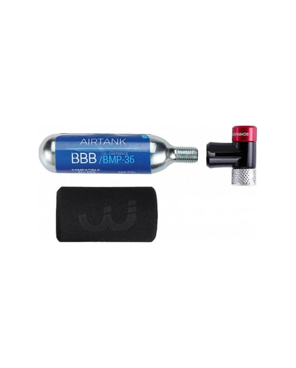 Pompka do nabojów CO2. Łatwa i bezpieczna obsługa. Kompatybilna z zaworem automatycznym i galusowym. 16-gramowy nabój i piankowa osłona ochronna znajdują się w zestawie.