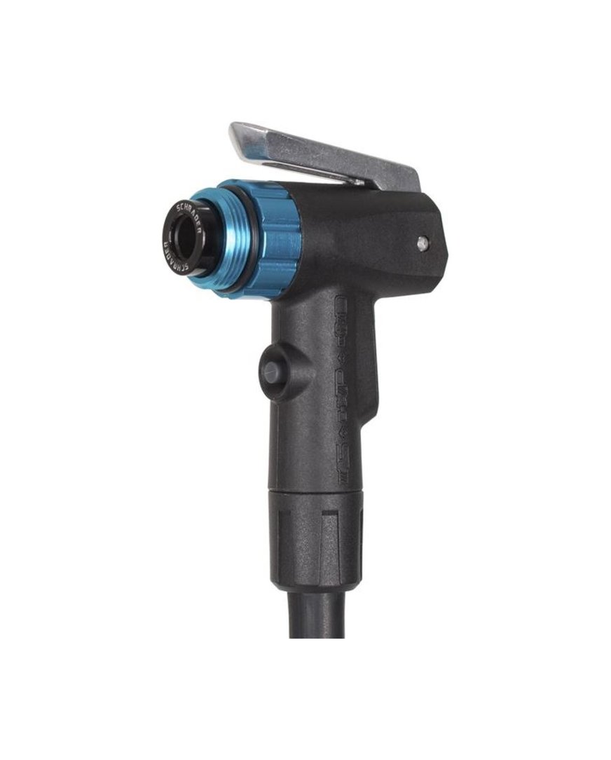 Wysokiej jakości pompa warsztatowa ze stalowym korpusem o długości 71 cm i stabilną podstawą, na której możesz polegać. Wskaźnik ciśnienia (średnica 7,5 cm) jest łatwy do odczytania dzięki swoim rozmiarom i kontrastowym kolorom. Głowica AirTap jest kompatybilna z zaworami galusowymi i automatycznymi oraz posiada przycisk zwalniający. Wąż ma długość 122 cm, dzięki czemu można napompować rower w bagażniku montażowym.