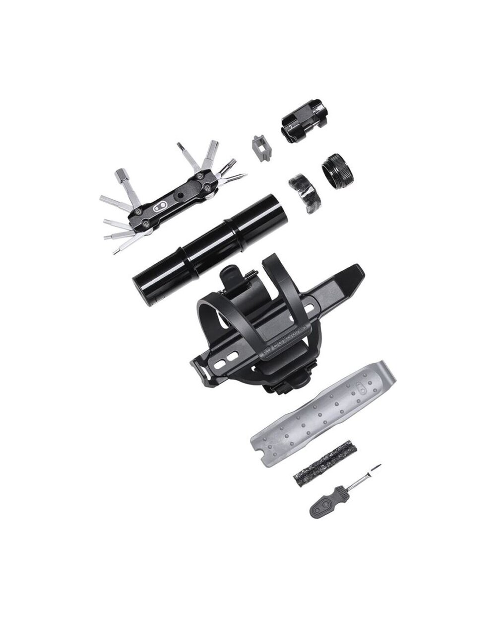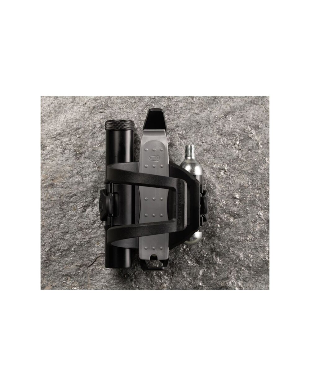 Kosz z łatwo regulowanym wejściem z lewej lub prawej strony, ze zintegrowaną dźwignią montażową, knotem i zapasowymi knotami. W bocznej przestrzeni do przechowywania znalazło się duże wielofunkcyjne narzędzie, a po drugiej stronie kosza można zamontować butlę CO2 lub mini pompkę.