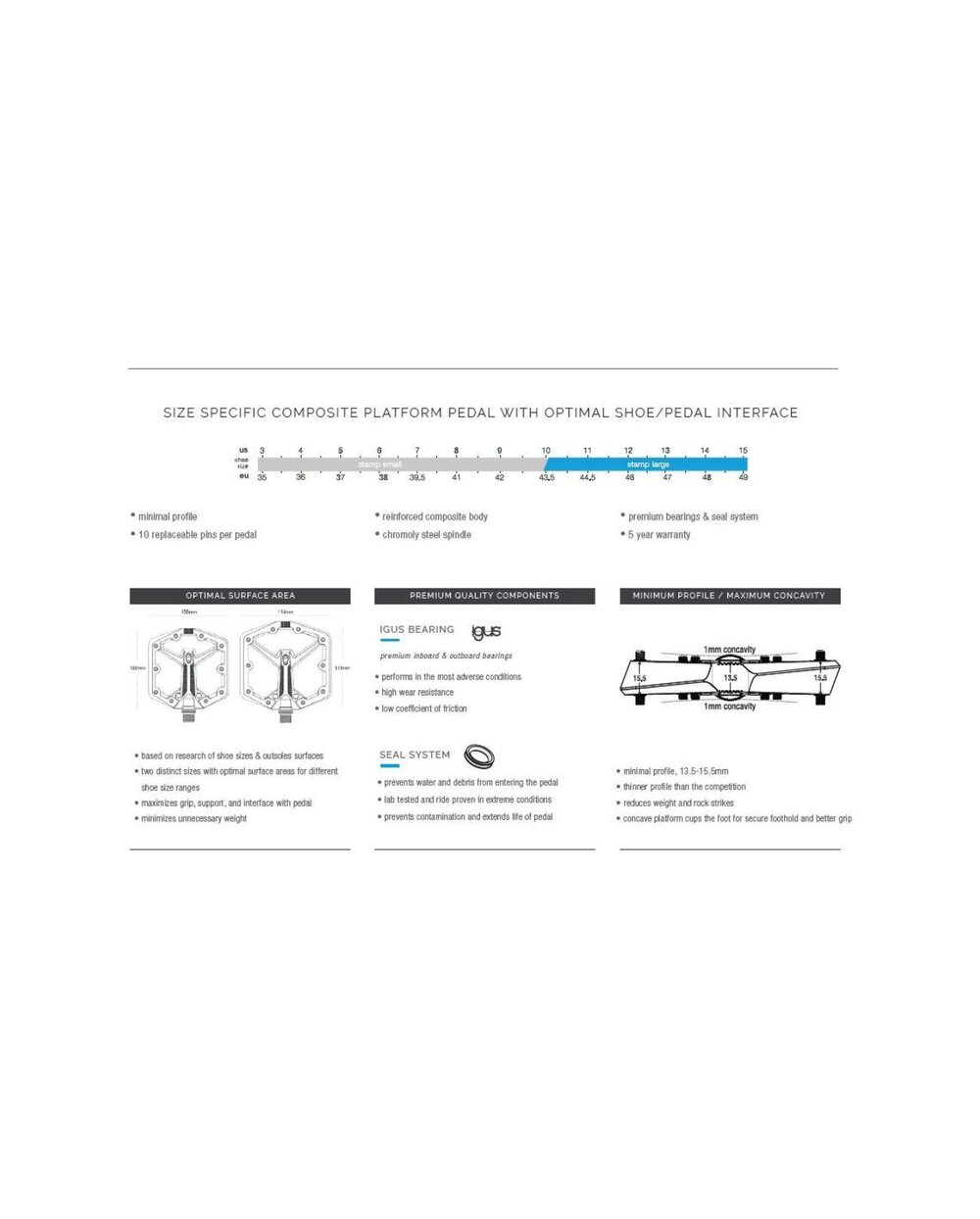 Nadeszła kolejna generacja najpopularniejszego pedału platformowego w Kalifornii! Nowe pedały Stamp 1 opierają się na dziedzictwie całej rodziny pedałów Stamp i mają wklęsłą platformę zapewniającą większą pewność na szlaku, sprawdzone komponenty wewnętrzne z pedału Stamp 7 zapewniające dużą trwałość i trwałość oraz nową jednoczęściową konstrukcję sworznia zapewniającą maksymalną przyczepność i łatwą wymianę pinów! Nowa wersja pedałów Stamp 1 została stworzona z bezkompromisowym zaangażowaniem w jakość i może pochwalić się solidną nylonową obudową oraz sprawdzonymi elementami wewnętrznymi z wielokrotnie nagradzanych pedałów Stamp 7. Zastosowanie: szlak/enduro/freeride/DH/rowery elektryczne/sport/dojazdy do pracy Smukły, wklęsły profil - wysokość korpusu pedału od 13,5 mm do 15,5 mm Waga 321g Korpus platformy: 100 x 100 mm (buty 35 do 43,5), wysokość 13,5-15,5 mm Platforma: kompozyt nylonowy Oś: kuta stal Cr-Mo Łożysko wewnętrzne: tuleja ślizgowa Igus LL Łożysko zewnętrzne: tuleja ślizgowa Igus LL Nowe jednoczęściowe wymienne sworznie, 10 sztuk na pedał (wysokość sworznia wewnętrznego 23 mm, wysokość sworznia zewnętrznego 25 mm) Stempel Small zalecany dla rozmiarów butów: 3-10 (US M) // 37-43,5 (UE) Stempel Large zalecany dla rozmiarów butów: 10-15 (US M) // 43,5-49 (UE)