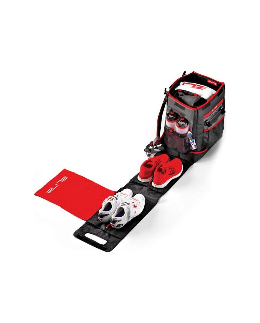 ELITE Tri Box to praktyczny i przestronny plecak zaprojektowany specjalnie dla triatlonistów i duathlonistów, który ułatwia organizację sprzętu przed, w trakcie i po wyścigu. Dzięki możliwości ustawienia czterech trybów – Standard, Pro, Lite i Lite Pro – plecak dopasowuje się do każdego treningu czy zawodów. Dwie osobne przegrody na tenisówki, miejsce na suchą i mokrą odzież, elementy odblaskowe oraz obrotowy blat zapewniają szybki dostęp i sprawne przechowywanie całego niezbędnego ekwipunku. Wytrzymały poliester gwarantuje długą żywotność i łatwą konserwację. Dzięki pojemności 38 litrów i wadze zaledwie 2,5 kg ELITE Tri Box jest idealnym towarzyszem dla każdego, kto szuka niezawodnej, praktycznej i elastycznej torby na treningi i zawody.