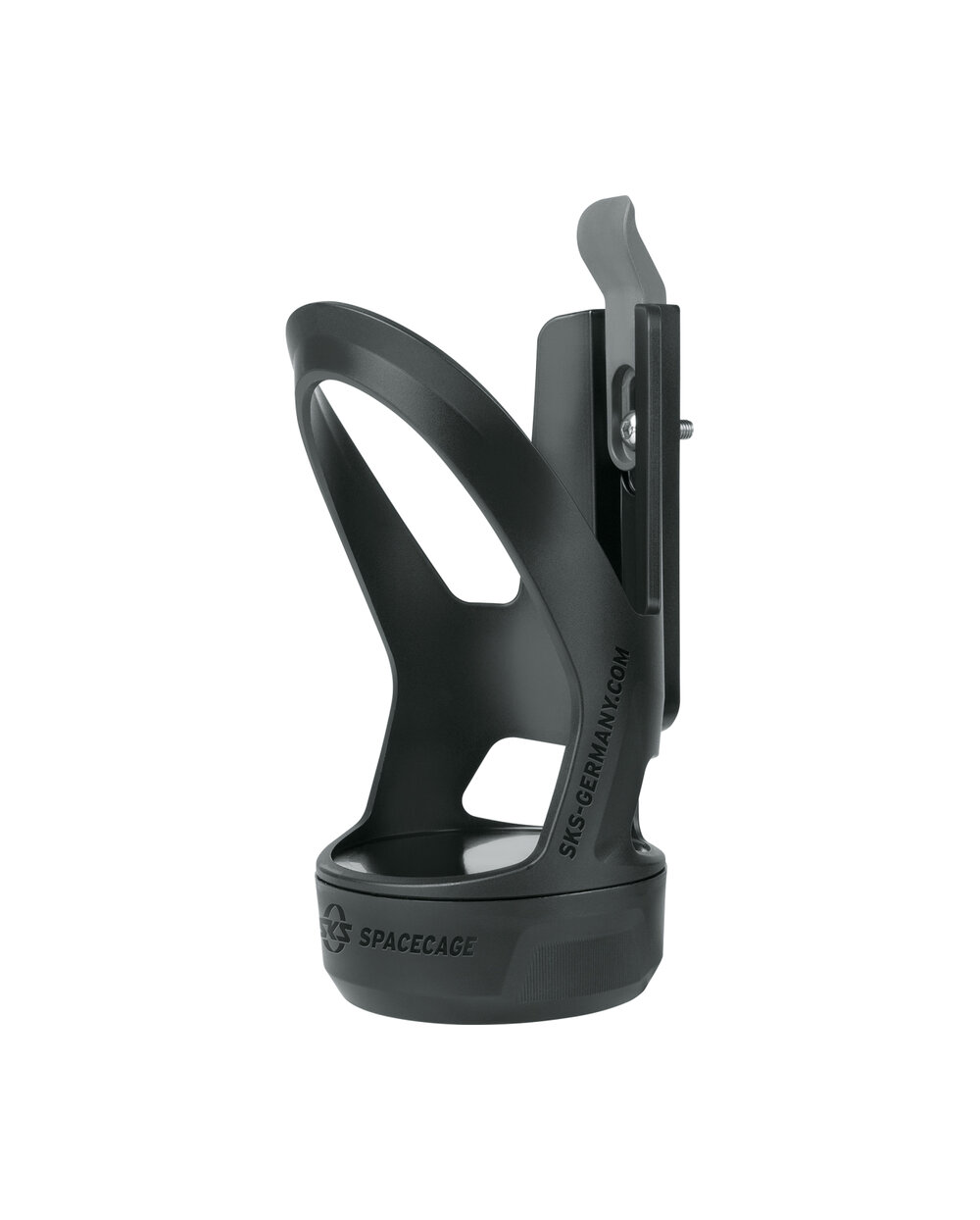 Spacecage to nie tylko koszyk na butelkę, to także schowek, który można łatwo zabezpieczyć zamknięciem bagnetowym. Można go używać do przechowywania zestawu naprawczego, kluczy lub drobnych na kawę. Koszyk wykonany jest z lekkiego, wytrzymałego tworzywa sztucznego i pasuje do każdego rozmiaru bidonu. Kolor: czarny matowy