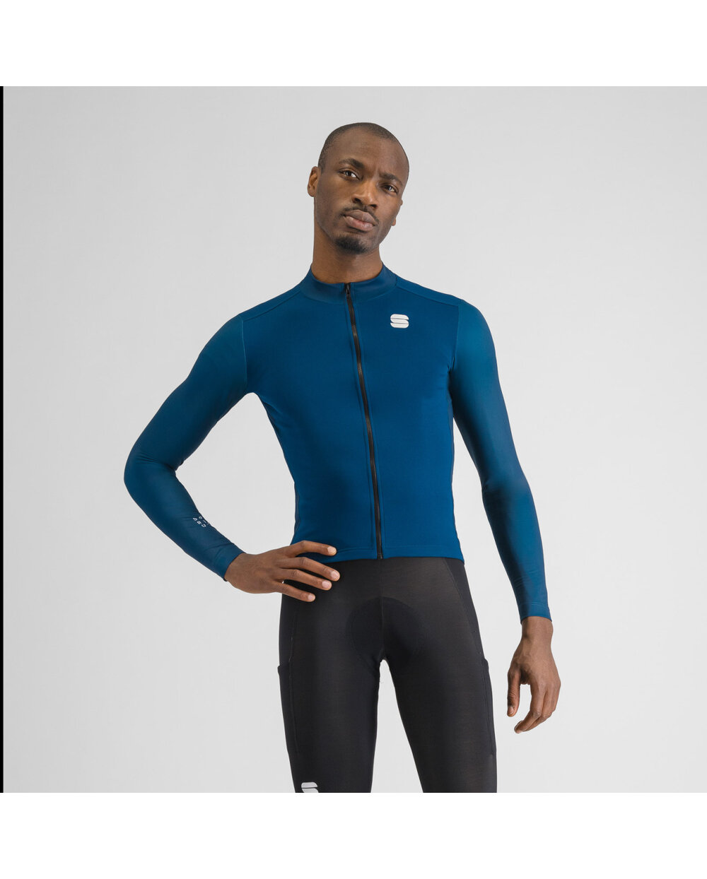Zimowa koszulka kolarska z długim rękawem - niebieski