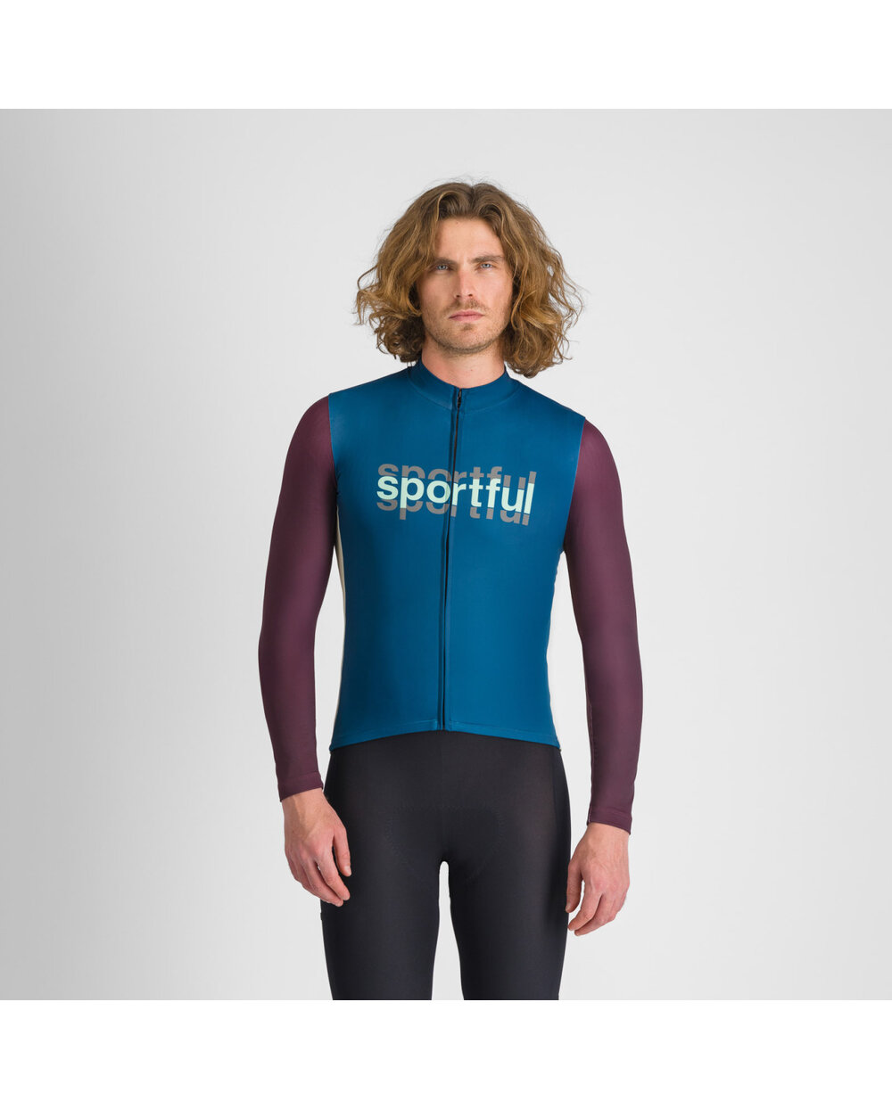 Sportful SUPERGIARA LOGO THERMAL Zimowa koszulka kolarska z długim rękawem - niebieski/fioletowy