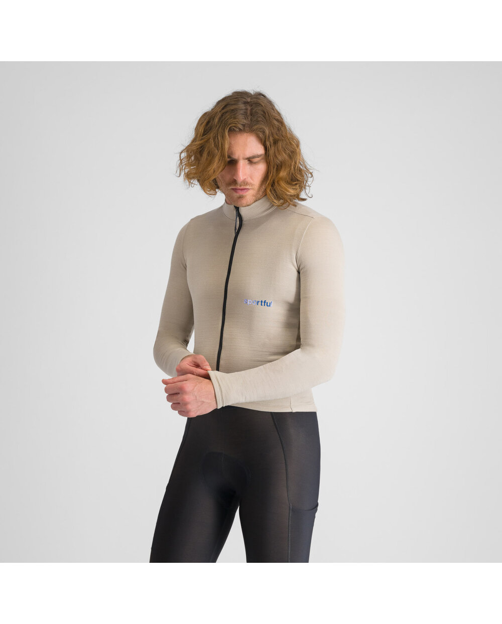 Zimowa koszulka kolarska z długim rękawem - beżowy