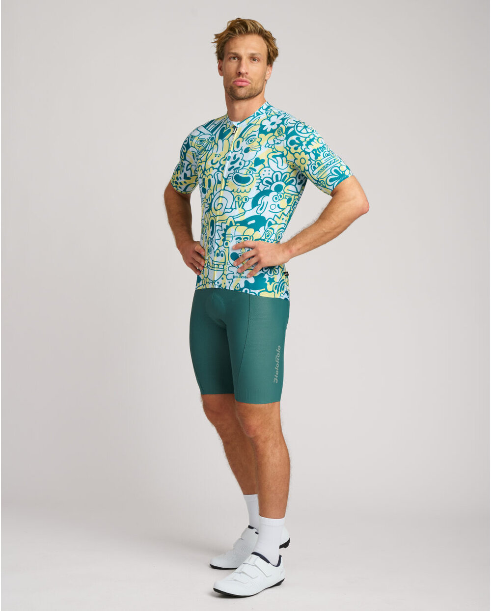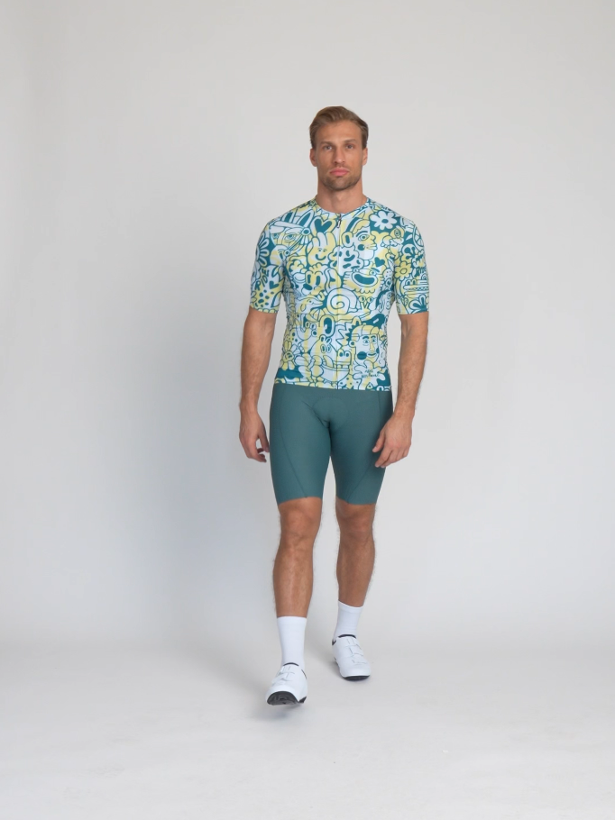 Koszulka rowerowa z limitowanej edycji stworzona we współpracy z hiszpańskim ilustratorem Asisem Percalesem. Rezultatem jest ekstrawagancja pełna oryginalnych detali, która działa jak złudzenie optyczne. Każdy look odkrywa nowe elementy i małe historie.