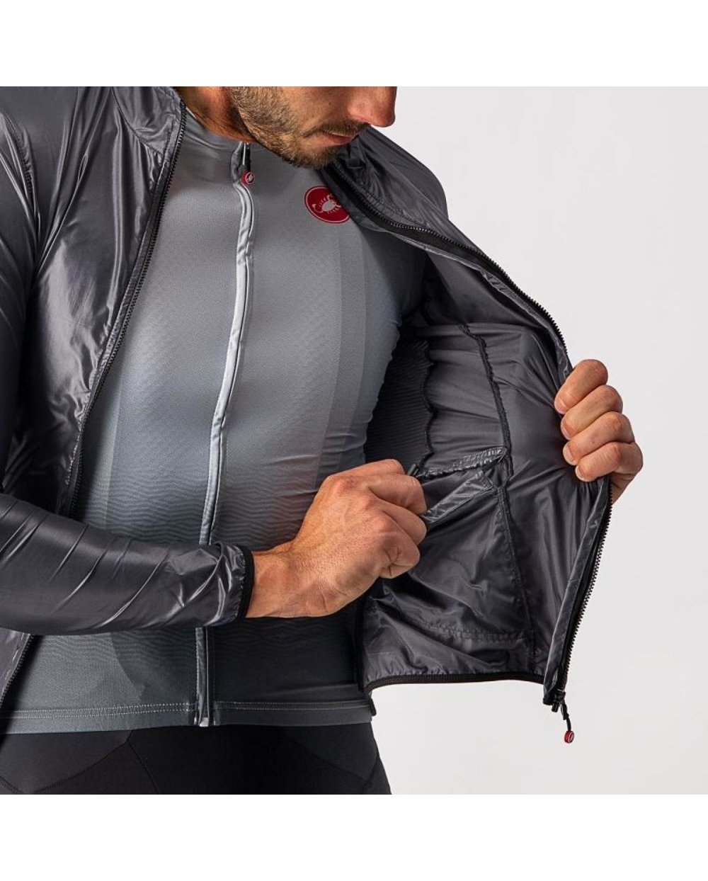 Niezwykle lekka i pakowna kurtka na wiatr i zimno, dopasowana do ciała dzięki niezwykle elastycznym i przewiewnym panelom, które pozwalają rozszerzyć zakres temperatur, jeden z najpopularniejszych elementów CASTELLI.