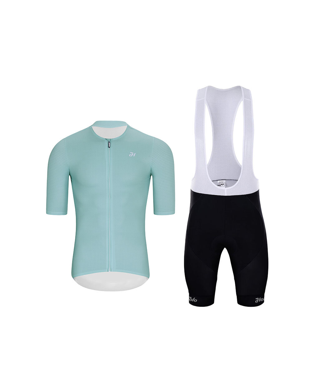 Zestaw rowerowy HOLOKOLO łączy lekką i funkcjonalną koszulkę ELEVATE w jasnoniebieskim kolorze z wygodnymi czarnymi spodenkami na szelkach NEAT. To połączenie jest idealne dla rowerzystów poszukujących równowagi między wydajnością, komfortem a ponadczasowym, minimalistycznym designem.